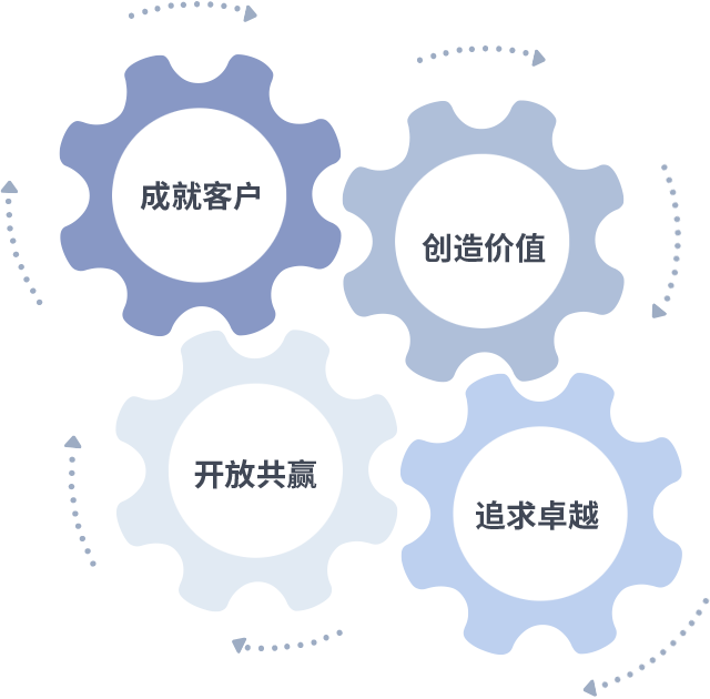 成就客户是一切决策的出发点,创造价值是衡量所有工作的标准,追求卓越是恒峰g22做事做人的态度,开放共赢是恒峰g22的格局也是最终的结果。价值观的齿轮环环相扣,推动着组织里的每个人不断向前。
